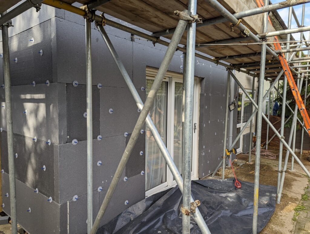 Generally 65% of heat loss from an average building is through the wall areas. External wall insulation, also known as EWI and external solid wall insulation, is a type of insulation that is attached to the outside of your walls. Two layers of material are used – one to offer insulation, and an outer layer of mineral or synthetic render to protect against weather and provide a decorative finish.